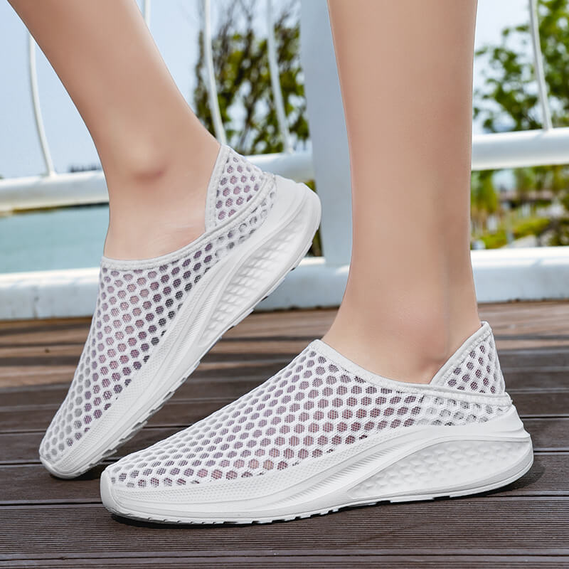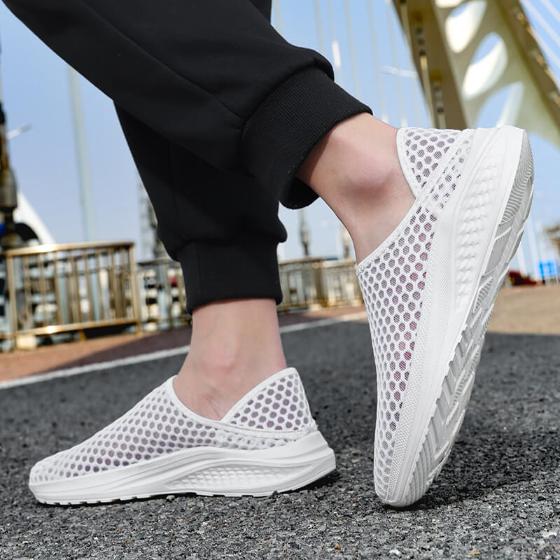 The stem in breathable mesh Ensures excellent air circulation and quick drying, providing a feeling of ventilation throughout the day. This breathable structure conforms to the shape of the foot while minimizing friction, guaranteeing optimal comfort until the end of your day. Ultra-lightweight, these shoes are easy to slip on thanks to their design. slip-on, ideal for everyday use without constraints.